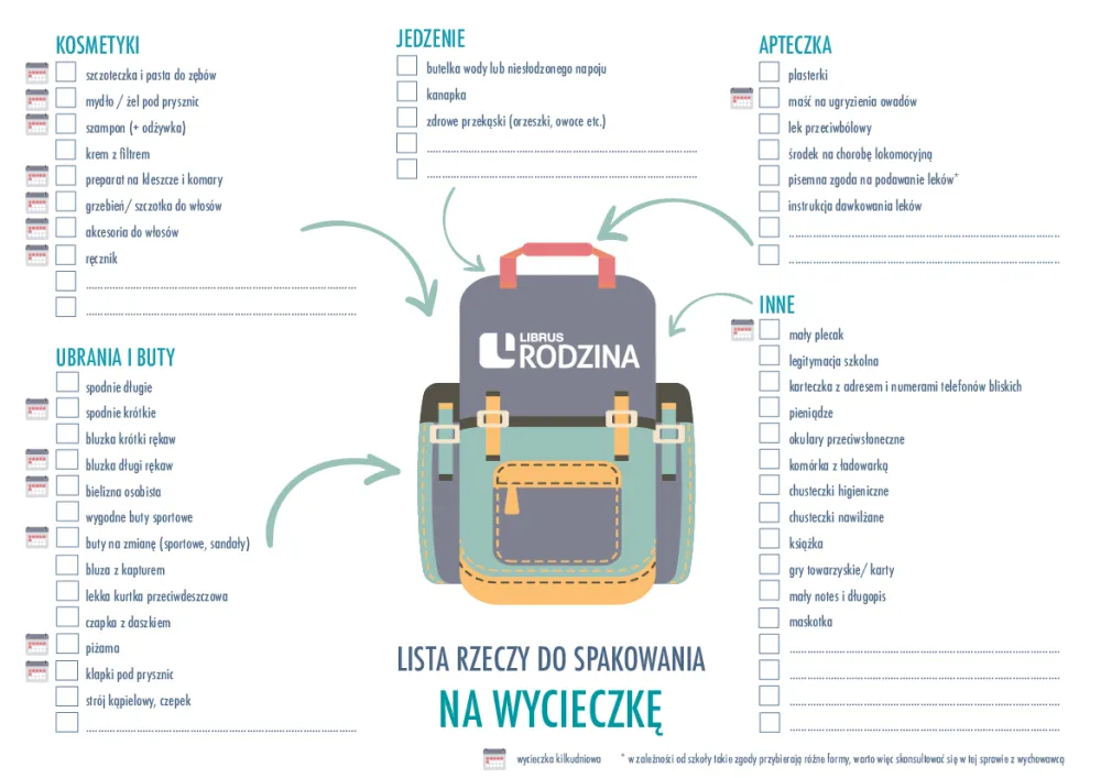 Uniwersalna lista rzeczy na każdą wycieczkę szkolną